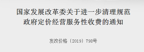 2019年5月5日,國(guó)家發(fā)展改革委發(fā)布了國(guó)家發(fā)展改革委關(guān)于進(jìn)一步清理規(guī)范政府定價(jià)經(jīng)營(yíng)服務(wù)性收費(fèi)的通知(發(fā)改價(jià)格〔2019〕798號(hào))。